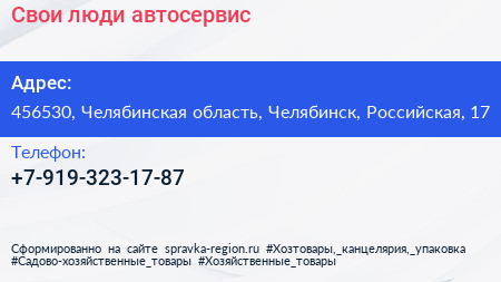 Свои люди, автосервис по адресу 456530, Челябинская область, Челябинск, Российская, 17 в дальнейшем Организация, размещена в следующих категориях: