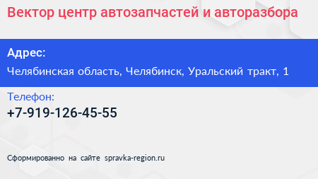 Вектор, центр автозапчастей и авторазбора по адресу Челябинская область, Челябинск, Уральский тракт, 1 в дальнейшем Организация, размещена в следующих категориях: