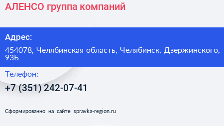 АЛЕНСО, группа компаний по адресу 454078, Челябинская область, Челябинск, Дзержинского, 93Б в дальнейшем Организация, размещена в следующих категориях: