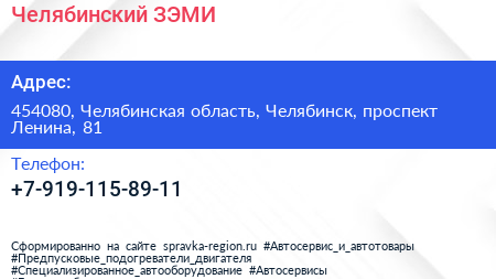 Челябинский ЗЭМИ по адресу 454080, Челябинская область, Челябинск, проспект Ленина, 81 в дальнейшем Организация, размещена в следующих категориях: