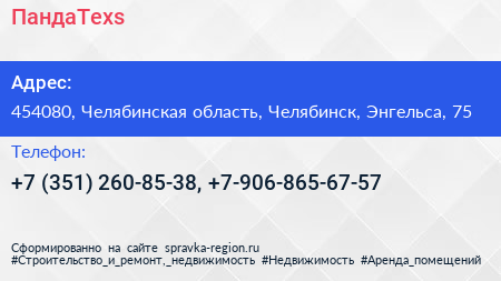 ПандаTexs по адресу 454080, Челябинская область, Челябинск, Энгельса, 75 в дальнейшем Организация, размещена в следующих категориях: