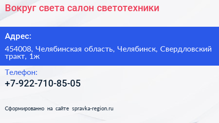 Вокруг света, салон светотехники по адресу 454008, Челябинская область, Челябинск, Свердловский тракт, 1ж в дальнейшем Организация, размещена в следующих категориях: