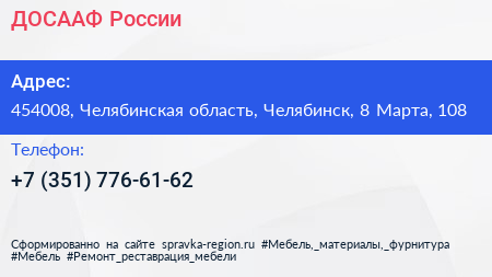 ДОСААФ России по адресу 454008, Челябинская область, Челябинск, 8 Марта, 108 в дальнейшем Организация, размещена в следующих категориях: