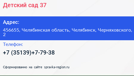 Детский сад №37 по адресу 456655, Челябинская область, Челябинск, Черняховского, 2 в дальнейшем Организация, размещена в следующих категориях: