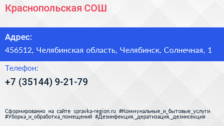 Краснопольская СОШ по адресу 456512, Челябинская область, Челябинск, Солнечная, 1 в дальнейшем Организация, размещена в следующих категориях:
