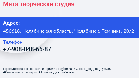 Мята, творческая студия по адресу 456618, Челябинская область, Челябинск, Темника, 20/2 в дальнейшем Организация, размещена в следующих категориях: