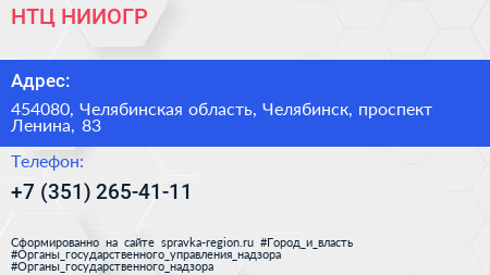 НТЦ-НИИОГР по адресу 454080, Челябинская область, Челябинск, проспект Ленина, 83 в дальнейшем Организация, размещена в следующих категориях: