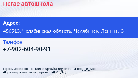 Пегас, автошкола по адресу 456513, Челябинская область, Челябинск, Ленина, 3 в дальнейшем Организация, размещена в следующих категориях: