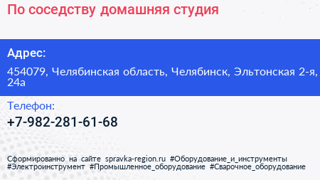 По соседству, домашняя студия по адресу 454079, Челябинская область, Челябинск, Эльтонская 2-я, 24а в дальнейшем Организация, размещена в следующих категориях: