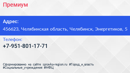 Премиум по адресу 456623, Челябинская область, Челябинск, Энергетиков, 5 в дальнейшем Организация, размещена в следующих категориях: