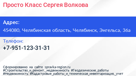 Просто Класс Сергея Волкова по адресу 454080, Челябинская область, Челябинск, Энгельса, 36а в дальнейшем Организация, размещена в следующих категориях: