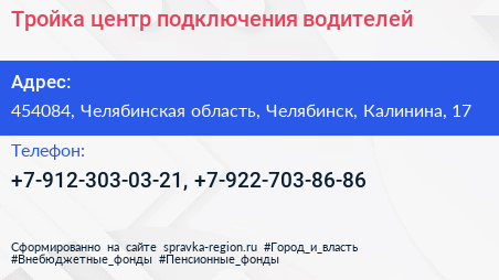 Тройка, центр подключения водителей по адресу 454084, Челябинская область, Челябинск, Калинина, 17 в дальнейшем Организация, размещена в следующих категориях: