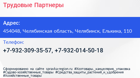 Трудовые Партнеры по адресу 454048, Челябинская область, Челябинск, Елькина, 110 в дальнейшем Организация, размещена в следующих категориях: