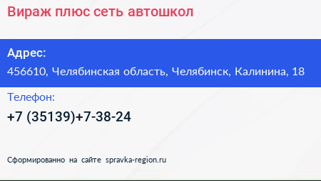 Вираж-плюс, сеть автошкол по адресу 456610, Челябинская область, Челябинск, Калинина, 18 в дальнейшем Организация, размещена в следующих категориях: