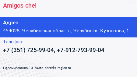 Amigos-chel по адресу 454028, Челябинская область, Челябинск, Кузнецова, 1 в дальнейшем Организация, размещена в следующих категориях: