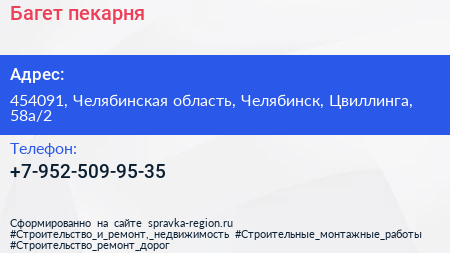 Багет, пекарня по адресу 454091, Челябинская область, Челябинск, Цвиллинга, 58а/2 в дальнейшем Организация, размещена в следующих категориях: