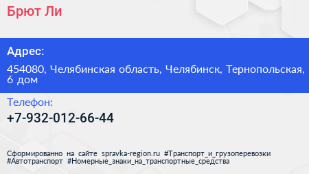Брют Ли по адресу 454080, Челябинская область, Челябинск, Тернопольская, 6 дом в дальнейшем Организация, размещена в следующих категориях: