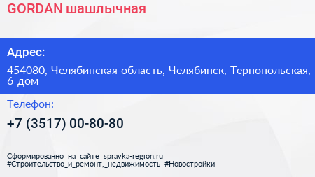 GORDAN, шашлычная по адресу 454080, Челябинская область, Челябинск, Тернопольская, 6 дом в дальнейшем Организация, размещена в следующих категориях: