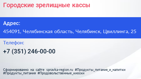 Городские зрелищные кассы по адресу 454091, Челябинская область, Челябинск, Цвиллинга, 25 в дальнейшем Организация, размещена в следующих категориях:
