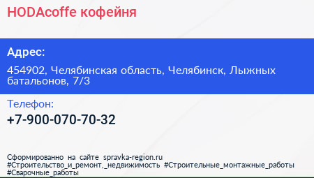 HODAcoffe, кофейня по адресу 454902, Челябинская область, Челябинск, Лыжных батальонов, 7/3 в дальнейшем Организация, размещена в следующих категориях: