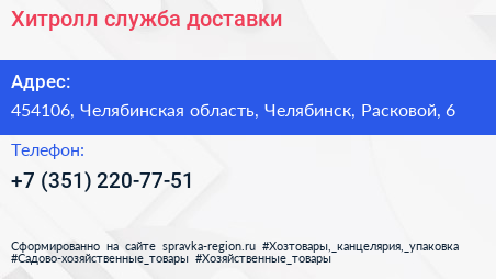 Хитролл, служба доставки по адресу 454106, Челябинская область, Челябинск, Расковой, 6 в дальнейшем Организация, размещена в следующих категориях: