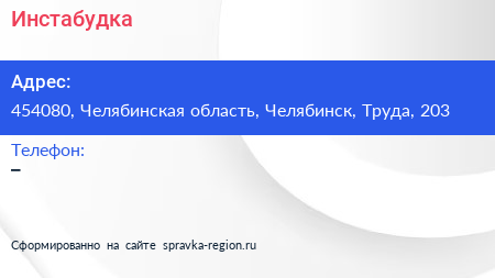Инстабудка по адресу 454080, Челябинская область, Челябинск, Труда, 203 в дальнейшем Организация, размещена в следующих категориях: