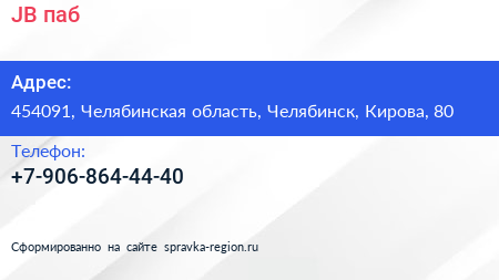 JB, паб по адресу 454091, Челябинская область, Челябинск, Кирова, 80 в дальнейшем Организация, размещена в следующих категориях: