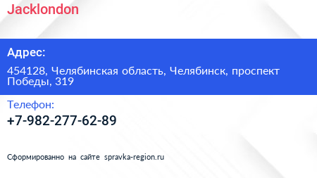 Jacklondon по адресу 454128, Челябинская область, Челябинск, проспект Победы, 319 в дальнейшем Организация, размещена в следующих категориях: