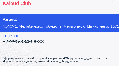 Kaloud Club по адресу 454091, Челябинская область, Челябинск, Цвиллинга, 15/1 в дальнейшем Организация, размещена в следующих категориях: