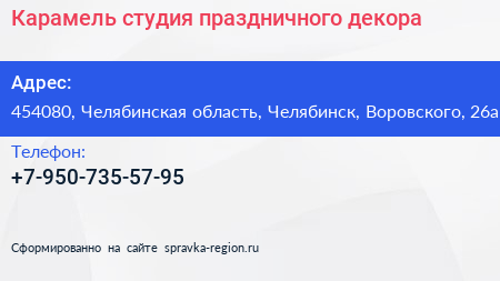 Карамель, студия праздничного декора по адресу 454080, Челябинская область, Челябинск, Воровского, 26а в дальнейшем Организация, размещена в следующих категориях: