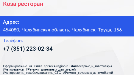 Коза, ресторан по адресу 454080, Челябинская область, Челябинск, Труда, 156 в дальнейшем Организация, размещена в следующих категориях: