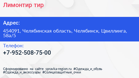 Лимонтир, тир по адресу 454091, Челябинская область, Челябинск, Цвиллинга, 58а/5 в дальнейшем Организация, размещена в следующих категориях: