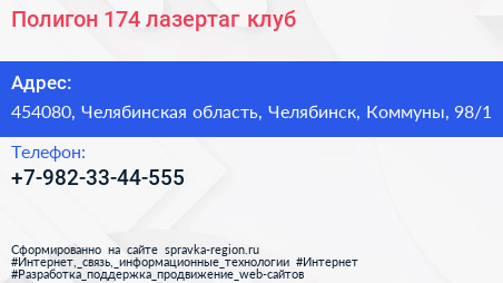 Полигон-174, лазертаг-клуб по адресу 454080, Челябинская область, Челябинск, Коммуны, 98/1 в дальнейшем Организация, размещена в следующих категориях: