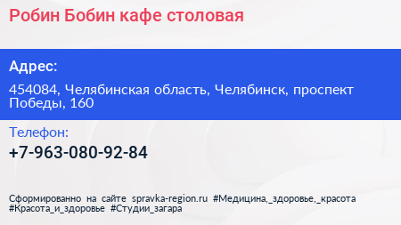 Робин-Бобин, кафе-столовая по адресу 454084, Челябинская область, Челябинск, проспект Победы, 160 в дальнейшем Организация, размещена в следующих категориях: