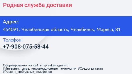 Родная, служба доставки по адресу 454091, Челябинская область, Челябинск, Маркса, 81 в дальнейшем Организация, размещена в следующих категориях: