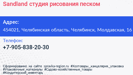 Sandland, студия рисования песком по адресу 454021, Челябинская область, Челябинск, Молдавская, 16 в дальнейшем Организация, размещена в следующих категориях: