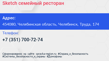 Sketch, семейный ресторан по адресу 454080, Челябинская область, Челябинск, Труда, 174 в дальнейшем Организация, размещена в следующих категориях:
