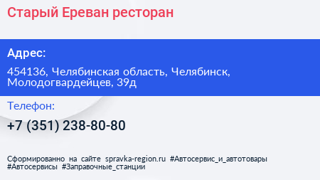 Старый Ереван, ресторан по адресу 454136, Челябинская область, Челябинск, Молодогвардейцев, 39д в дальнейшем Организация, размещена в следующих категориях: