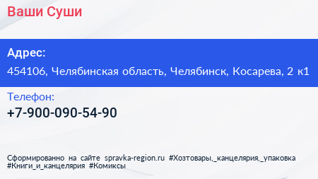 Ваши Суши по адресу 454106, Челябинская область, Челябинск, Косарева, 2 к1 в дальнейшем Организация, размещена в следующих категориях: