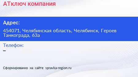 АТключ, компания по адресу 454071, Челябинская область, Челябинск, Героев Танкограда, 63а в дальнейшем Организация, размещена в следующих категориях: