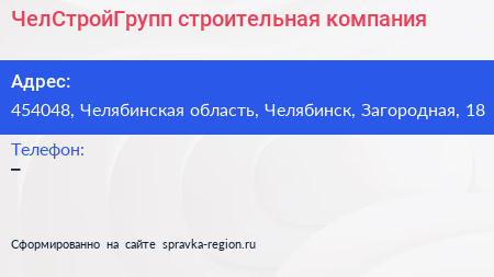 ЧелСтройГрупп, строительная компания по адресу 454048, Челябинская область, Челябинск, Загородная, 18 в дальнейшем Организация, размещена в следующих категориях: