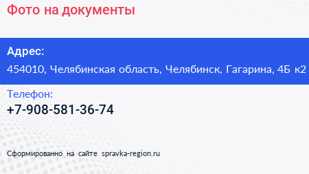 Фото на документы по адресу 454010, Челябинская область, Челябинск, Гагарина, 4Б к2 в дальнейшем Организация, размещена в следующих категориях: