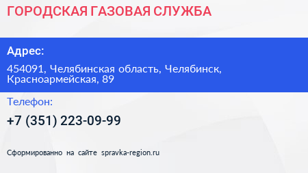 ГОРОДСКАЯ-ГАЗОВАЯ-СЛУЖБА по адресу 454091, Челябинская область, Челябинск, Красноармейская, 89 в дальнейшем Организация, размещена в следующих категориях: