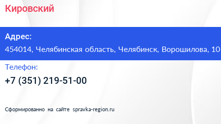 Кировский по адресу 454014, Челябинская область, Челябинск, Ворошилова, 10 в дальнейшем Организация, размещена в следующих категориях: