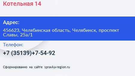 Котельная №14 по адресу 456623, Челябинская область, Челябинск, проспект Славы, 25а/1 в дальнейшем Организация, размещена в следующих категориях: