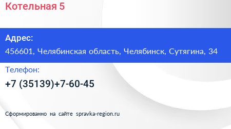 Котельная №5 по адресу 456601, Челябинская область, Челябинск, Сутягина, 34 в дальнейшем Организация, размещена в следующих категориях:
