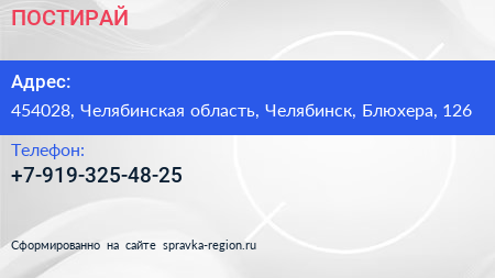 ПОСТИРАЙ по адресу 454028, Челябинская область, Челябинск, Блюхера, 126 в дальнейшем Организация, размещена в следующих категориях: