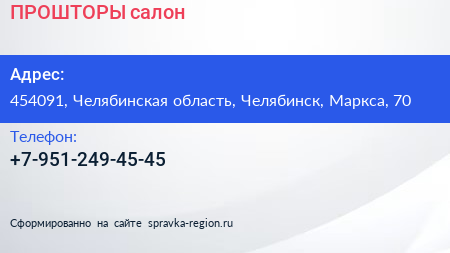 ПРОШТОРЫ, салон по адресу 454091, Челябинская область, Челябинск, Маркса, 70 в дальнейшем Организация, размещена в следующих категориях: