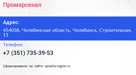 Промарсенал по адресу 454038, Челябинская область, Челябинск, Строительная, 11 в дальнейшем Организация, размещена в следующих категориях: