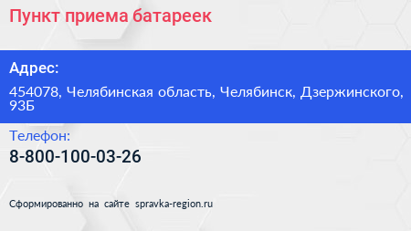 Пункт приема батареек по адресу 454078, Челябинская область, Челябинск, Дзержинского, 93Б в дальнейшем Организация, размещена в следующих категориях: